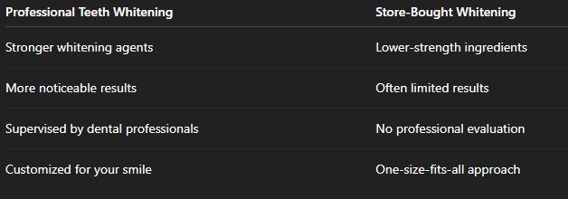 Professional whitening is generally stronger and more reliable than store-bought whitening strips or toothpaste.